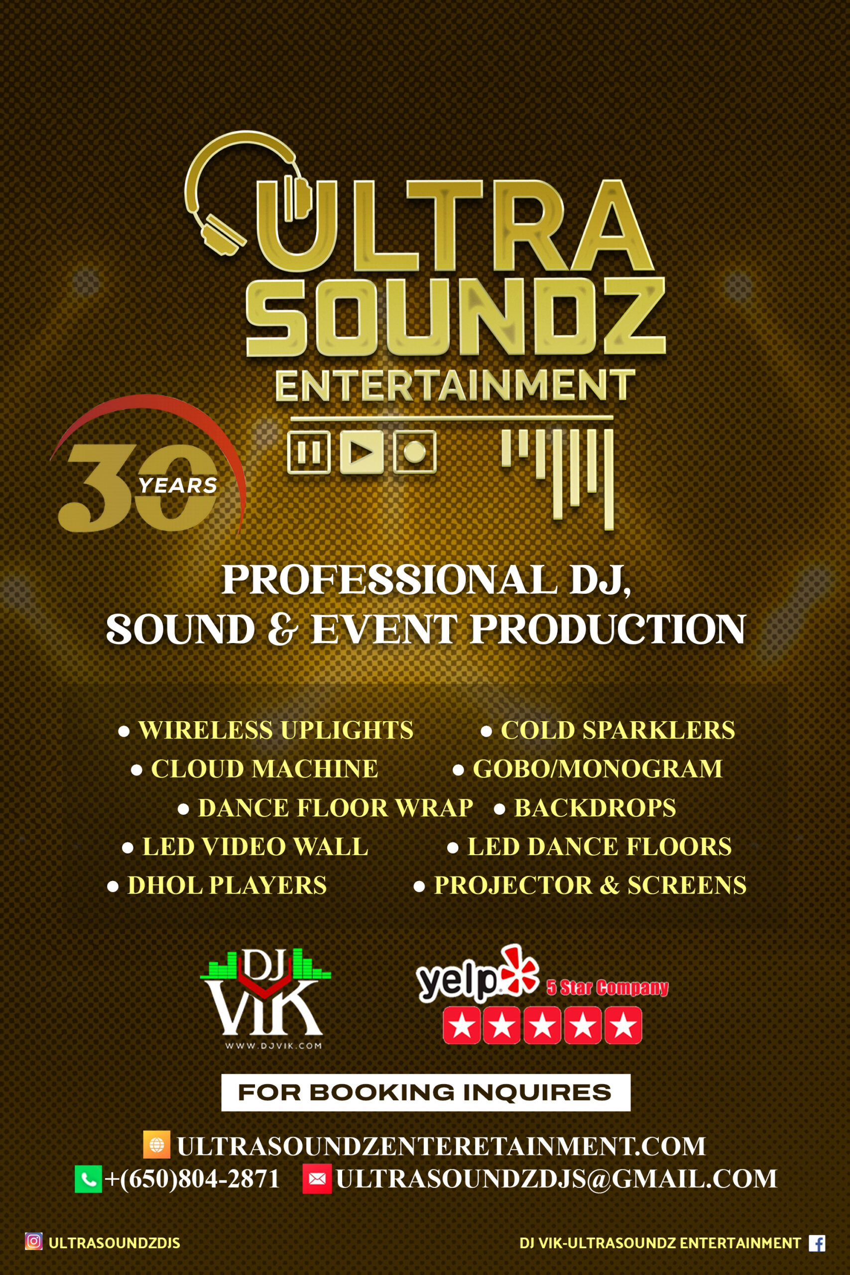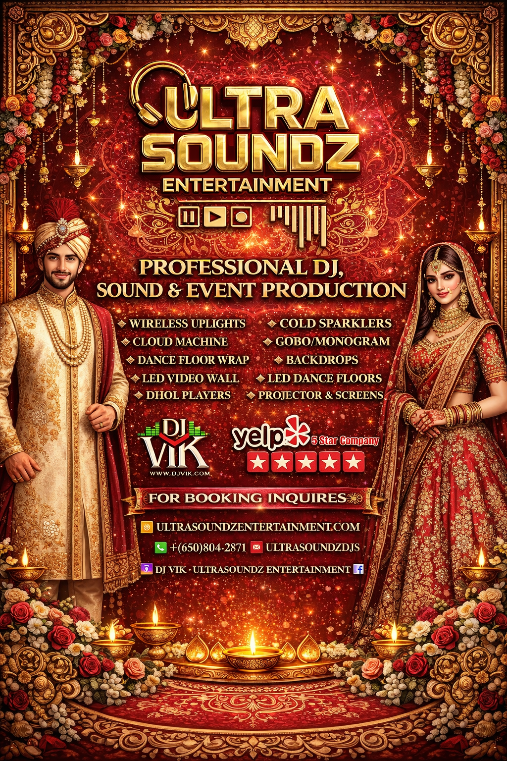 Ultra Soundz Entertainment was established in 1995 and is a premier full event production company providing equipment and entertainment for South Asian Indian Events. We provide services for Sangeets, Baraats, Wedding Ceremonies, Receptions, Birthdays, Anniversary’s, Graduations, Cooperate Events, Raas Garba’s, and Festivities such as Diwali and Holi. We professionalize in Bollywood, Hindi, Bhangra, Western Top 40, 80’s 90’s, Hip Hop, EDM and Mainstream Music. We are also able to accommodate music from many different parts of India consisting of languages such as Hindi, Telegu, Tamil, Kannada, Gujrati, Punjabi, Marathi, Bengali and others. Additionally, our music library also consists of Pashto, Arabic, Afrobeats, Soca Chutney and Fijian music. With 30 years of experience, we have accommodated music for all types of cultures and events.